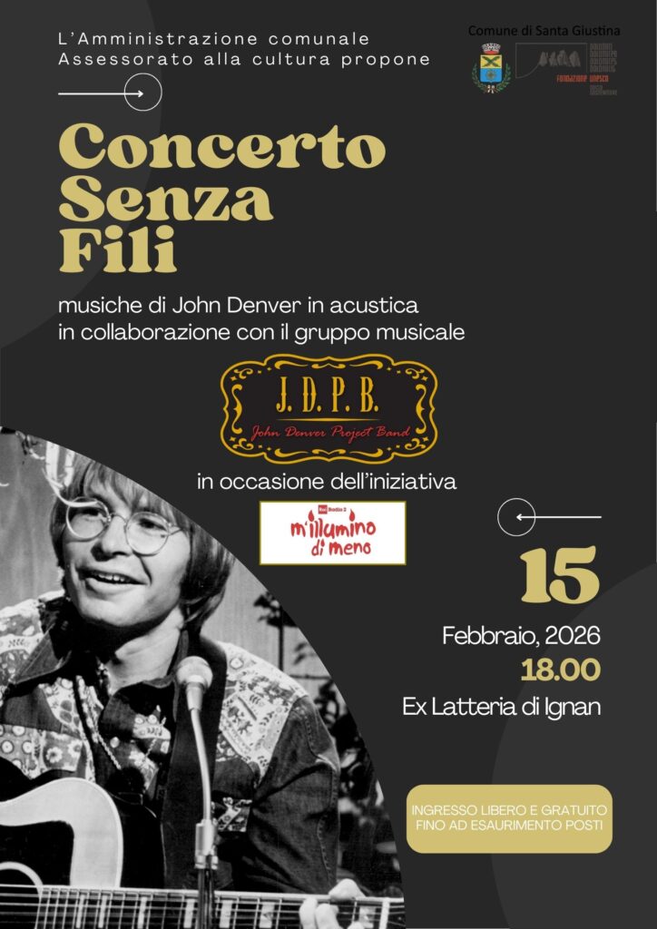 Il “Concerto senza Fili”, organizzato dal Comune di Santa Giustina, vedrà la JDPB proporre le canzoni di John Denver che più rispecchiano il tema della salvaguardia e rispetto del pianeta in un set completamente acustico.